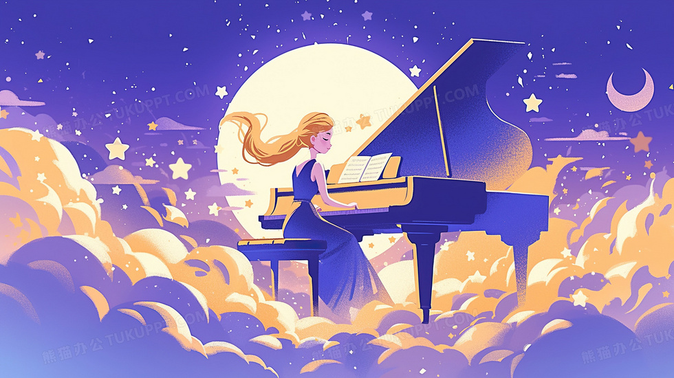 本作品内容为星空下弹奏钢琴的女孩唯美插画, 格式为 jpg, 大小3 MB, 图片尺寸为2912 x 1632, 源文件无水印, 欢迎使用熊猫办公。 如认为平台内容涉嫌侵权,可通过邮件:tousu@tukuppt.com提出书面通知,我们将及时处理。