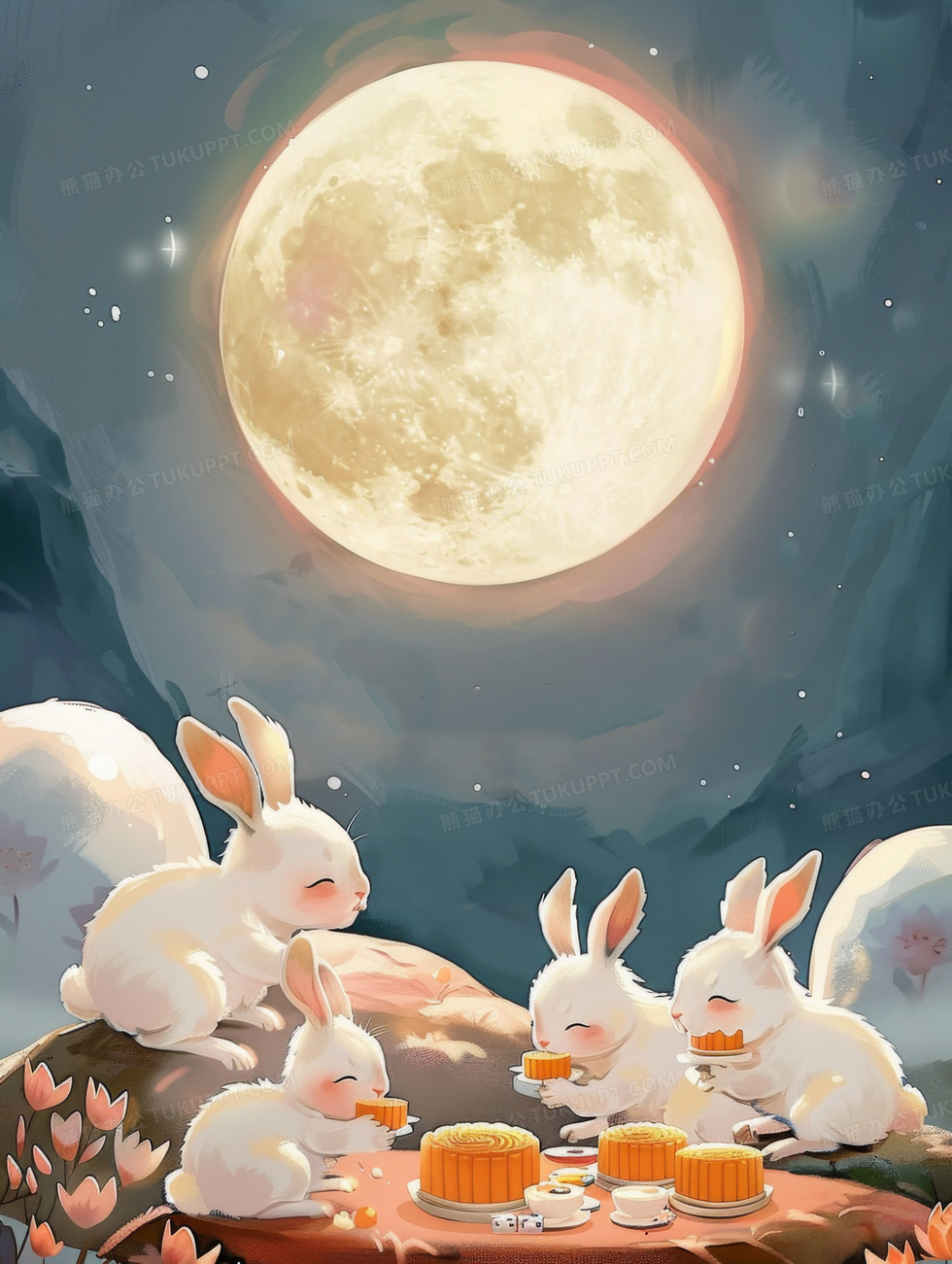 本作品内容为卡通中秋节圆月兔子吃月饼背景, 格式为 jpg, 大小7 MB, 图片尺寸为1856 x 2464, 作品中背景图片无需修改, 源文件无水印,可以直接使用, 欢迎使用熊猫办公。 如认为平台内容涉嫌侵权,可通过邮件:tousu@tukuppt.com提出书面通知,我们将及时处理。