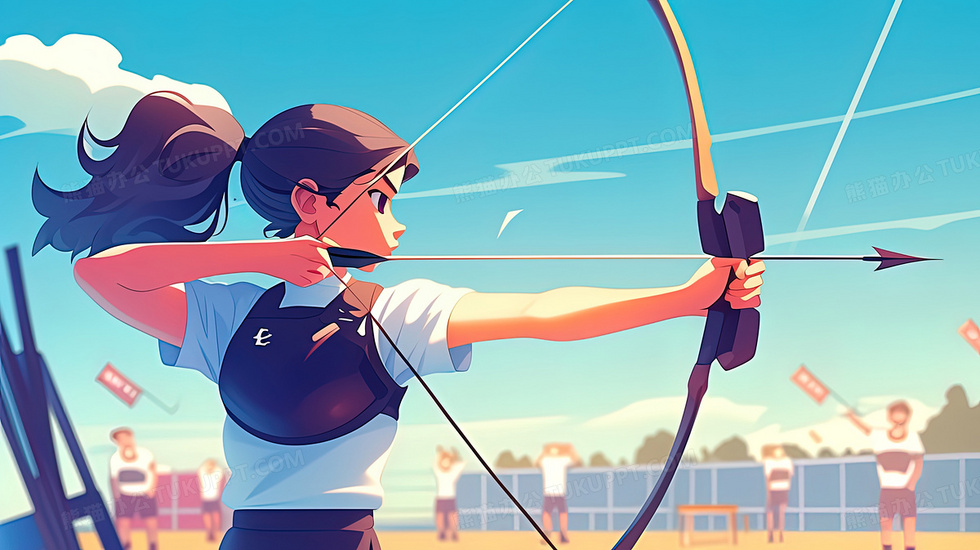 本作品内容为运动会女运动员射箭比赛插画, 格式为 jpg, 大小2 MB, 图片尺寸为2912 x 1632, 源文件无水印, 欢迎使用熊猫办公。 如认为平台内容涉嫌侵权,可通过邮件:tousu@tukuppt.com提出书面通知,我们将及时处理。