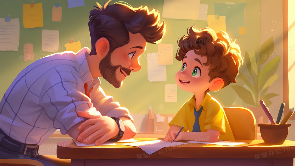 本作品内容为爸爸给孩子辅导家庭作业插画, 格式为 jpg, 大小3 MB, 图片尺寸为2912 x 1632, 源文件无水印, 欢迎使用熊猫办公。 如认为平台内容涉嫌侵权,可通过邮件:tousu@tukuppt.com提出书面通知,我们将及时处理。