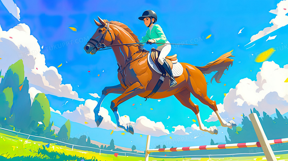 本作品内容为运动会男运动员马术比赛插画, 格式为 jpg, 大小3 MB, 图片尺寸为2912 x 1632, 源文件无水印, 欢迎使用熊猫办公。 如认为平台内容涉嫌侵权,可通过邮件:tousu@tukuppt.com提出书面通知,我们将及时处理。