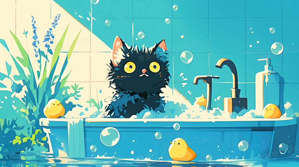 本作品内容为小猫在浴室洗澡宠物插画, 格式为 jpg, 大小3 MB, 图片尺寸为2912 x 1632, 源文件无水印, 欢迎使用熊猫办公。 如认为平台内容涉嫌侵权,可通过邮件:tousu@tukuppt.com提出书面通知,我们将及时处理。