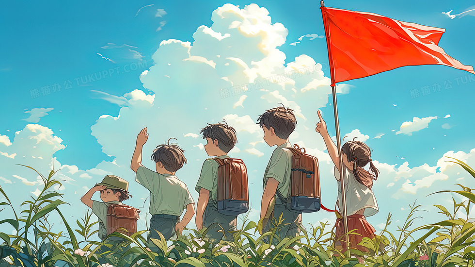 本作品内容为望向天空手拿红旗敬礼的小朋友插画, 格式为 jpg, 大小6 MB, 图片尺寸为2912 x 1632, 源文件无水印, 欢迎使用熊猫办公。 如认为平台内容涉嫌侵权,可通过邮件:tousu@tukuppt.com提出书面通知,我们将及时处理。