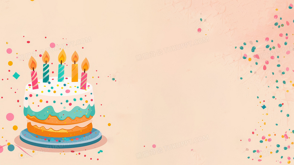 本作品内容为卡通简约生日蛋糕庆祝背景, 格式为 jpg, 大小5 MB, 图片尺寸为2912 x 1632, 作品中背景图片无需修改, 源文件无水印,可以直接使用, 欢迎使用熊猫办公。 如认为平台内容涉嫌侵权,可通过邮件:tousu@tukuppt.com提出书面通知,我们将及时处理。