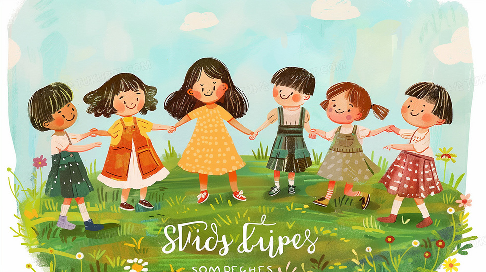 本作品内容为幼儿园小朋友手拉手在草地上做游戏绘本风格插画, 格式为 jpg, 大小8 MB, 图片尺寸为2912 x 1632, 源文件无水印, 欢迎使用熊猫办公。 如认为平台内容涉嫌侵权,可通过邮件:tousu@tukuppt.com提出书面通知,我们将及时处理。