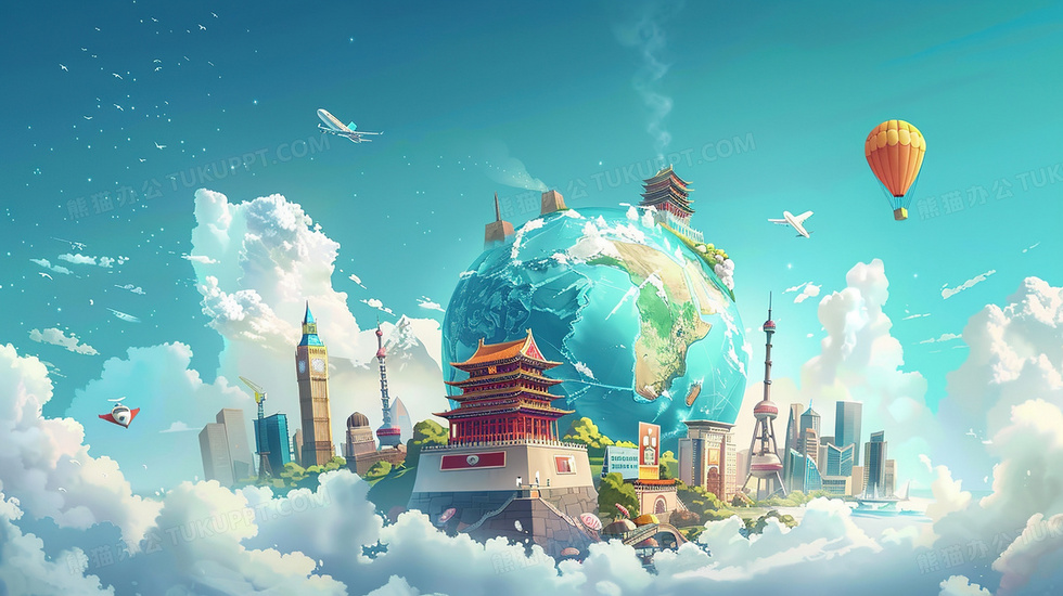 本作品内容为简约风环球旅行创意插画, 格式为 jpg, 大小3 MB, 图片尺寸为2912 x 1632, 源文件无水印, 欢迎使用熊猫办公。 如认为平台内容涉嫌侵权,可通过邮件:tousu@tukuppt.com提出书面通知,我们将及时处理。
