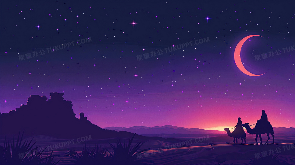 本作品内容为紫色沙漠梦幻星空夜晚背景, 格式为 jpg, 大小3 MB, 图片尺寸为2912 x 1632, 作品中背景图片无需修改, 源文件无水印,可以直接使用, 欢迎使用熊猫办公。 如认为平台内容涉嫌侵权,可通过邮件:tousu@tukuppt.com提出书面通知,我们将及时处理。