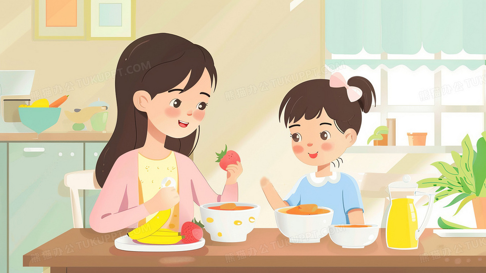 本作品内容为母亲和孩子健康饮食插画, 格式为 jpg, 大小2 MB, 图片尺寸为2912 x 1632, 源文件无水印, 欢迎使用熊猫办公。 如认为平台内容涉嫌侵权,可通过邮件:tousu@tukuppt.com提出书面通知,我们将及时处理。