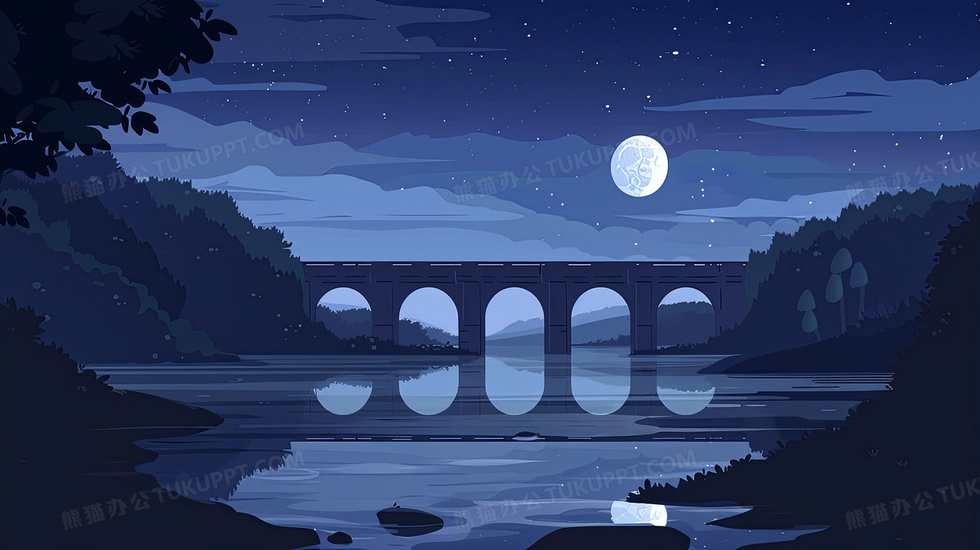 本作品内容为卡通夜晚桥和水面背景, 格式为 jpg, 大小4 MB, 图片尺寸为2912 x 1632, 作品中背景图片无需修改, 源文件无水印,可以直接使用, 欢迎使用熊猫办公。 如认为平台内容涉嫌侵权,可通过邮件:tousu@tukuppt.com提出书面通知,我们将及时处理。