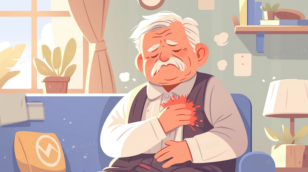 本作品内容为胸部疼痛心脏问题的老年人插画, 格式为 jpg, 大小2 MB, 图片尺寸为2912 x 1632, 源文件无水印, 欢迎使用熊猫办公。 如认为平台内容涉嫌侵权,可通过邮件:tousu@tukuppt.com提出书面通知,我们将及时处理。