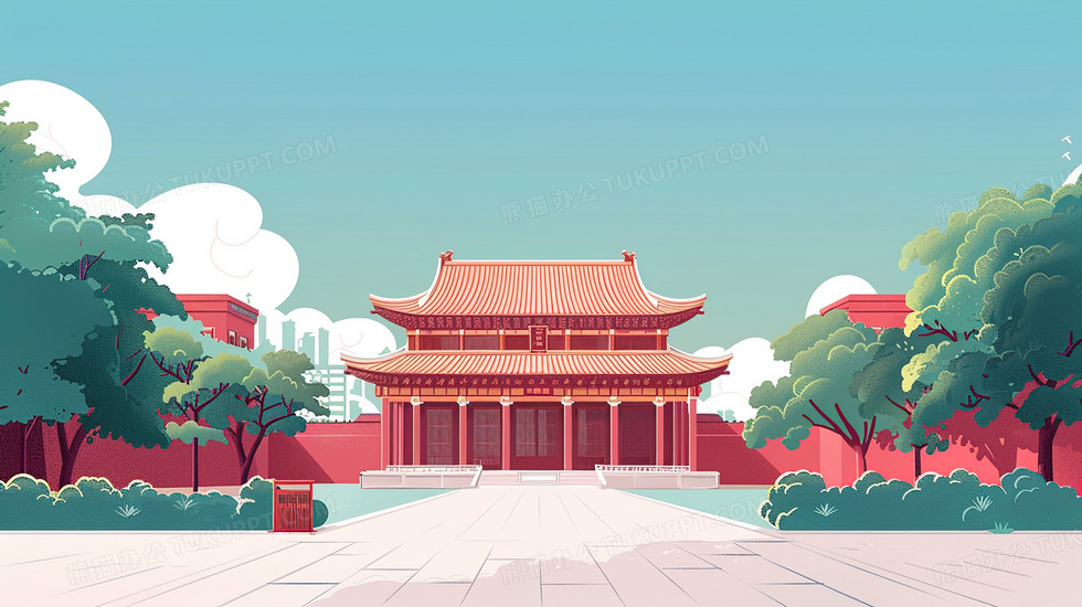 本作品内容为蓝天白云古典建筑绿树插画, 格式为 jpg, 大小3 MB, 图片尺寸为2912 x 1632, 源文件无水印, 欢迎使用熊猫办公。 如认为平台内容涉嫌侵权,可通过邮件:tousu@tukuppt.com提出书面通知,我们将及时处理。