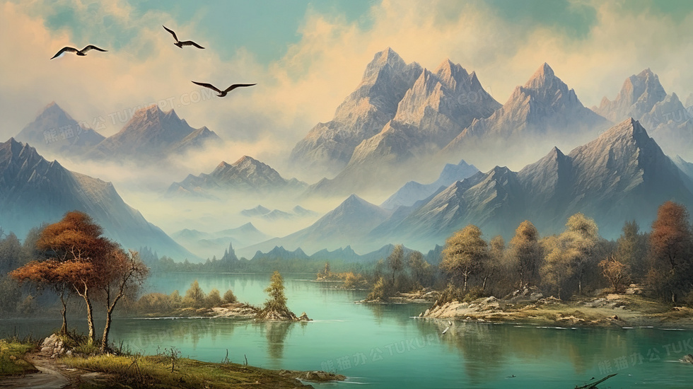 本作品内容为传统中国风古典建筑风景插画, 格式为 jpg, 大小6 MB, 图片尺寸为2912 x 1632, 源文件无水印, 欢迎使用熊猫办公。 如认为平台内容涉嫌侵权,可通过邮件:tousu@tukuppt.com提出书面通知,我们将及时处理。