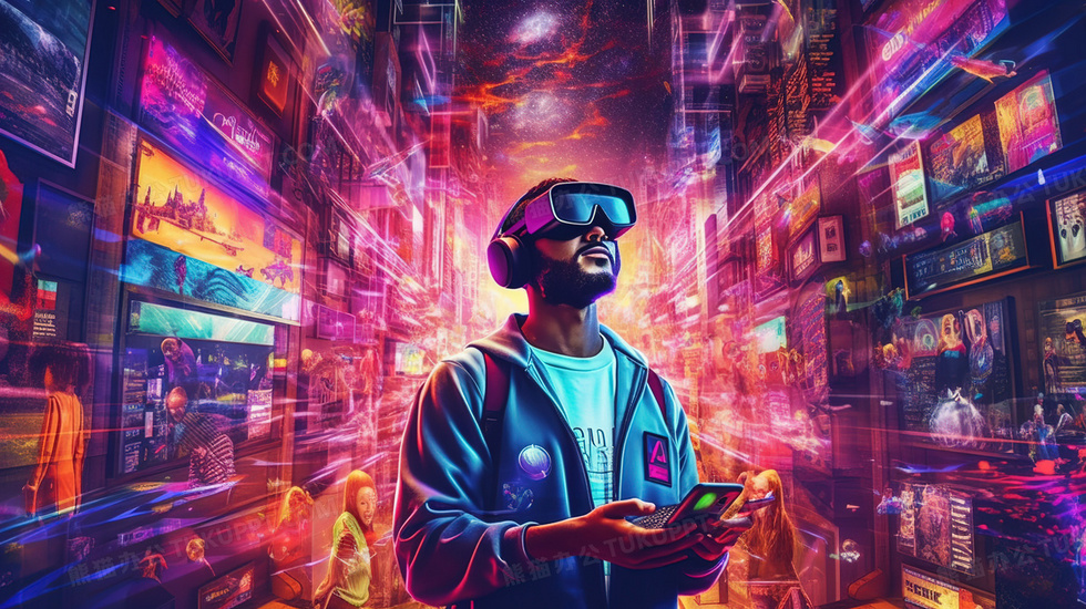 首页 > 插画 > 科技艺术 > 其他 > 彩色科技虚拟现实VR探索