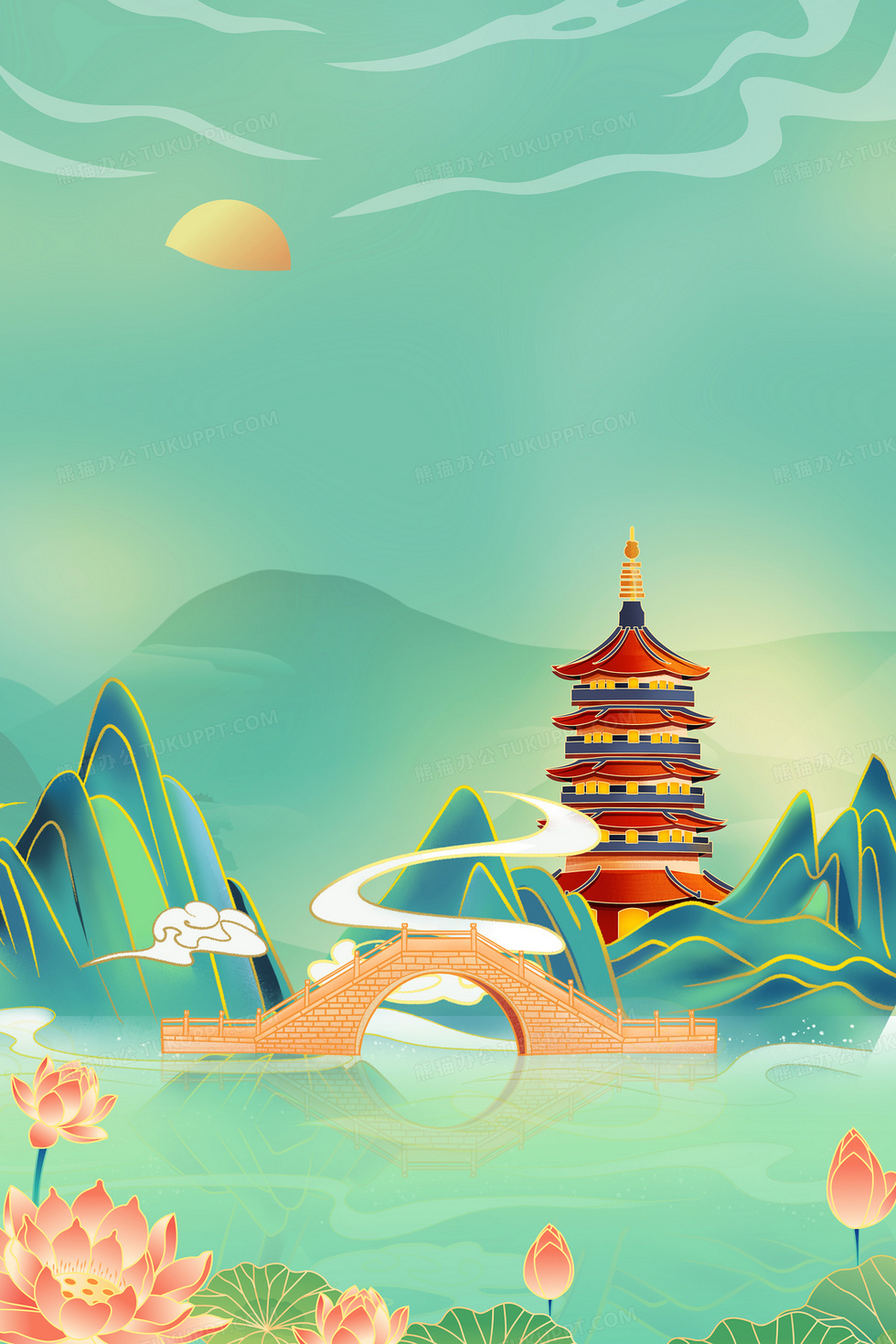 本作品内容为山水中国风国潮建筑塔插画, 格式为 psd, 大小64 MB, 请使用软件PhotoShop(CS6)打开, 源文件无水印, 欢迎使用熊猫办公。 如认为平台内容涉嫌侵权,可通过邮件:tousu@tukuppt.com提出书面通知,我们将及时处理。