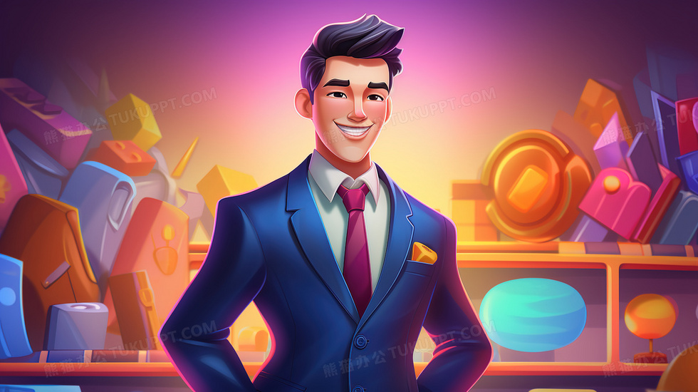 本作品内容为一位男性销售精英插画, 格式为 jpg, 大小4 MB, 图片尺寸为2912 x 1632, 源文件无水印, 欢迎使用熊猫办公。 如认为平台内容涉嫌侵权,可通过邮件:tousu@tukuppt.com提出书面通知,我们将及时处理。