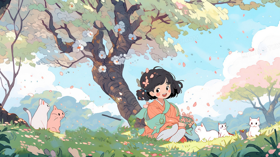 本作品内容为春游蓝天白云樱花树下的猫和女孩风景插画, 格式为 jpg, 大小3 MB, 图片尺寸为2912 x 1632, 源文件无水印, 欢迎使用熊猫办公。 如认为平台内容涉嫌侵权,可通过邮件:tousu@tukuppt.com提出书面通知,我们将及时处理。