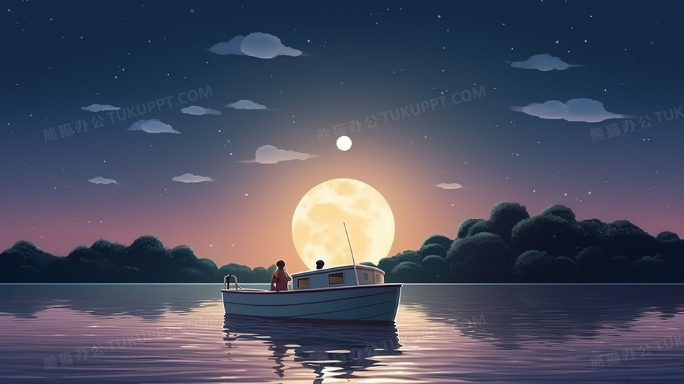本作品内容为圆月夜空下泛舟湖上插画, 格式为 jpg, 大小4 MB, 图片尺寸为2912 x 1632, 源文件无水印, 欢迎使用熊猫办公。 如认为平台内容涉嫌侵权,可通过邮件:tousu@tukuppt.com提出书面通知,我们将及时处理。