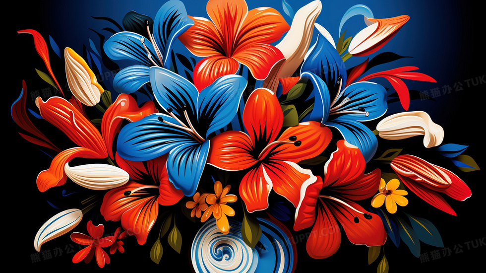 本作品内容为彩色创意毕加索风格抽象花朵插画, 格式为 jpg, 大小6 MB, 图片尺寸为2912 x 1632, 源文件无水印, 欢迎使用熊猫办公。 如认为平台内容涉嫌侵权,可通过邮件:tousu@tukuppt.com提出书面通知,我们将及时处理。