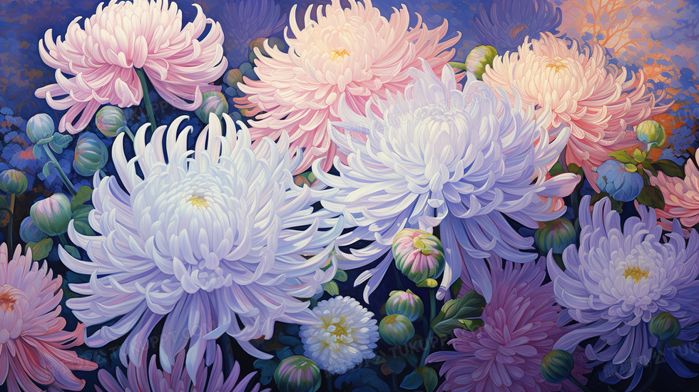 本作品内容为秋天盛开的菊花插画, 格式为 jpg, 大小7 MB, 图片尺寸为2912 x 1632, 源文件无水印, 欢迎使用熊猫办公。 如认为平台内容涉嫌侵权,可通过邮件:tousu@tukuppt.com提出书面通知,我们将及时处理。