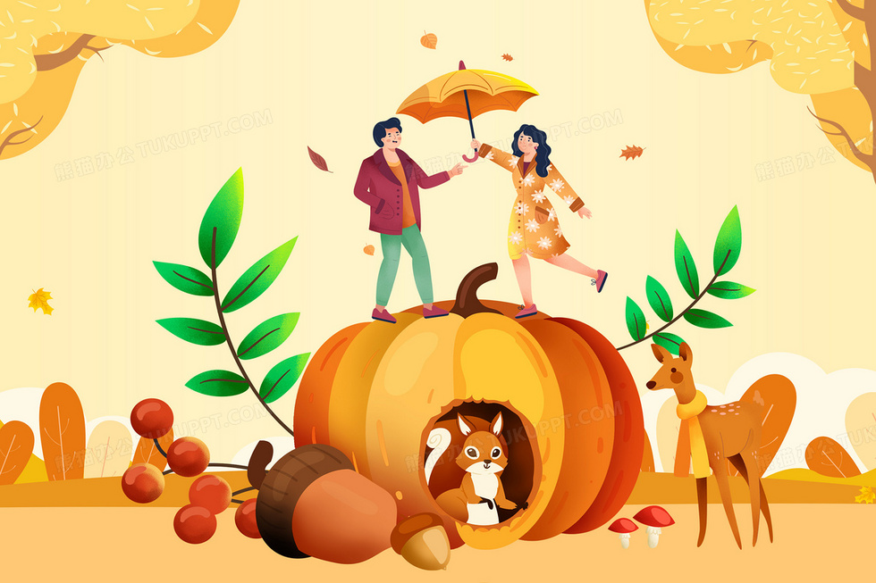 本作品内容为秋天情侣在南瓜上跳舞卡通创意插画, 格式为 psd, 大小16 MB, 请使用软件PhotoShop(CS6)打开, 源文件无水印, 欢迎使用熊猫办公。 如认为平台内容涉嫌侵权,可通过邮件:tousu@tukuppt.com提出书面通知,我们将及时处理。