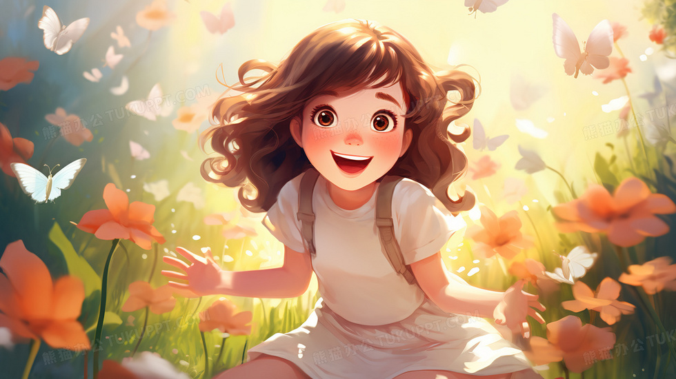 本作品内容为春天在草地花丛中快乐玩耍的女孩插画, 格式为 jpg, 大小5 MB, 图片尺寸为2912 x 1632, 源文件无水印, 欢迎使用熊猫办公。 如认为平台内容涉嫌侵权,可通过邮件:tousu@tukuppt.com提出书面通知,我们将及时处理。