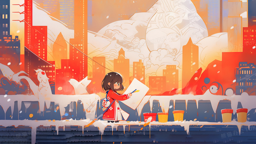 本作品内容为粉刷城市的女孩梦幻唯美插画, 格式为 jpg, 大小7 MB, 图片尺寸为2912 x 1632, 源文件无水印, 欢迎使用熊猫办公。 如认为平台内容涉嫌侵权,可通过邮件:tousu@tukuppt.com提出书面通知,我们将及时处理。