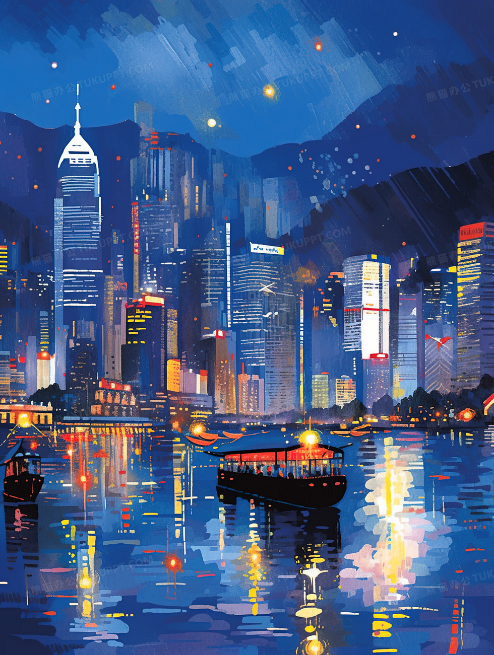 本作品内容为繁华大都市夜景城市建筑风景插画, 格式为 jpg, 大小7 MB, 图片尺寸为1856 x 2464, 源文件无水印, 欢迎使用熊猫办公。 如认为平台内容涉嫌侵权,可通过邮件:tousu@tukuppt.com提出书面通知,我们将及时处理。