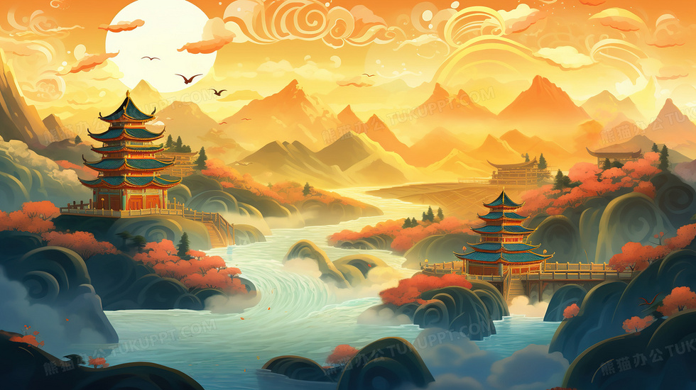 本作品内容为 大气雅致国潮中国风山水风景画, 格式为 jpg, 大小6 MB, 图片尺寸为2912 x 1632, 源文件无水印, 欢迎使用熊猫办公。 如认为平台内容涉嫌侵权,可通过邮件:tousu@tukuppt.com提出书面通知,我们将及时处理。
