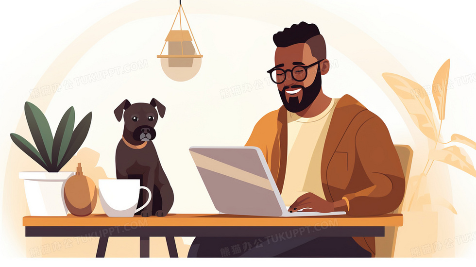 本作品内容为居家商务男士办公插画, 格式为 jpg, 大小4 MB, 图片尺寸为2912 x 1632, 源文件无水印, 欢迎使用熊猫办公。 如认为平台内容涉嫌侵权,可通过邮件:tousu@tukuppt.com提出书面通知,我们将及时处理。