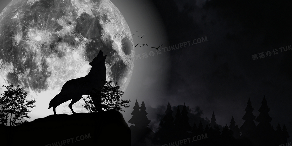 本作品内容为狼黑夜月亮背景, 格式为 psd, 大小48 MB, 图片尺寸为4722 x 2367, 作品中背景图片无需修改, 源文件无水印,可以直接使用, 欢迎使用熊猫办公。 如认为平台内容涉嫌侵权,可通过邮件:tousu@tukuppt.com提出书面通知,我们将及时处理。