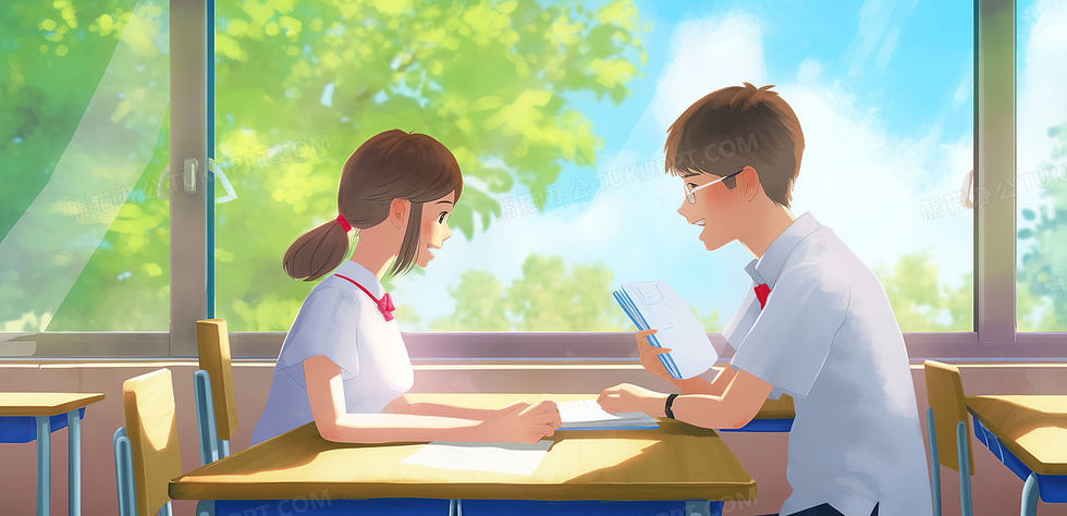 本作品内容为两个学生在教室学习讨论作业创意插画, 格式为 jpg, 大小7 MB, 图片尺寸为5824 x 2820, 源文件无水印, 欢迎使用熊猫办公。 如认为平台内容涉嫌侵权,可通过邮件:tousu@tukuppt.com提出书面通知,我们将及时处理。