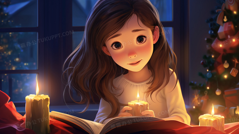 本作品内容为烛光里读书的儿童插画, 格式为 jpg, 大小5 MB, 图片尺寸为2912 x 1632, 源文件无水印, 欢迎使用熊猫办公。 如认为平台内容涉嫌侵权,可通过邮件:tousu@tukuppt.com提出书面通知,我们将及时处理。