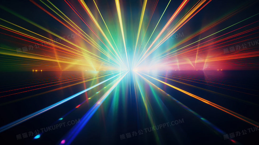 本作品内容为彩虹色激光光效插画, 格式为 jpg, 大小5 MB, 图片尺寸为2912 x 1632, 源文件无水印, 欢迎使用熊猫办公。 如认为平台内容涉嫌侵权,可通过邮件:tousu@tukuppt.com提出书面通知,我们将及时处理。