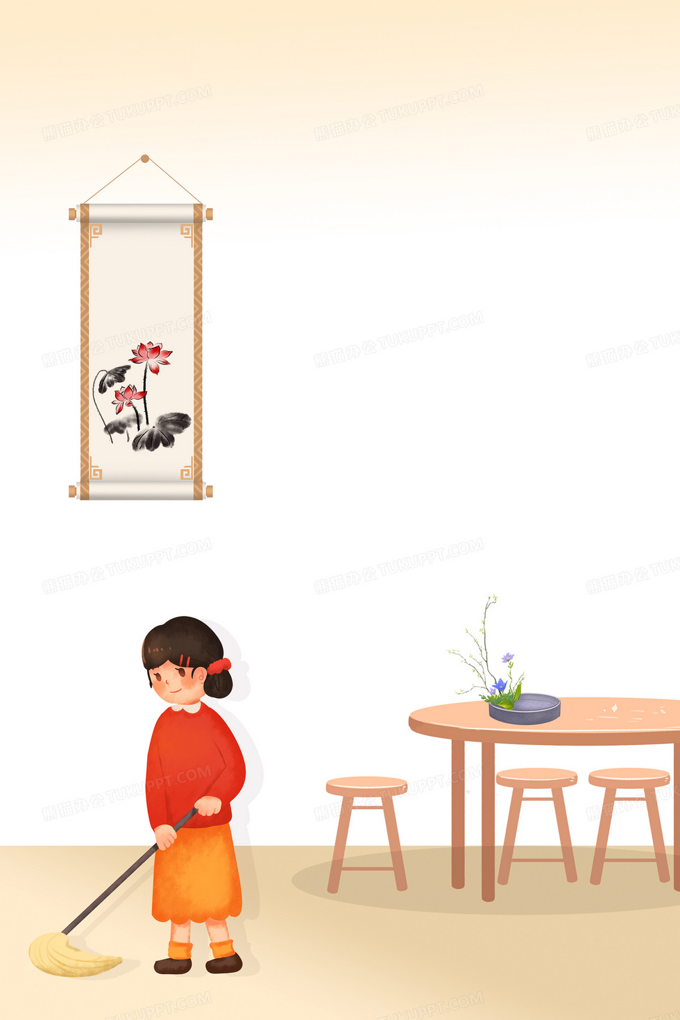 本作品内容为卡通打扫卫生合成背景, 格式为 psd, 大小11 MB, 图片尺寸为3543 x 5314, 作品中背景图片无需修改, 源文件无水印,可以直接使用, 欢迎使用熊猫办公。 如认为平台内容涉嫌侵权,可通过邮件:tousu@tukuppt.com提出书面通知,我们将及时处理。