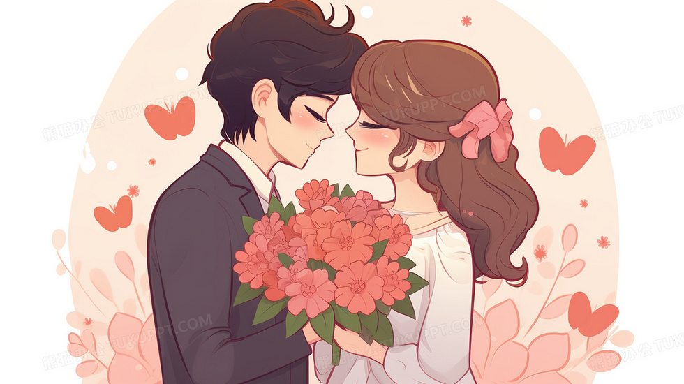 本作品内容为手握花束拥抱的情侣插画, 格式为 jpg, 大小4 MB, 图片尺寸为2912 x 1632, 源文件无水印, 欢迎使用熊猫办公。 如认为平台内容涉嫌侵权,可通过邮件:tousu@tukuppt.com提出书面通知,我们将及时处理。