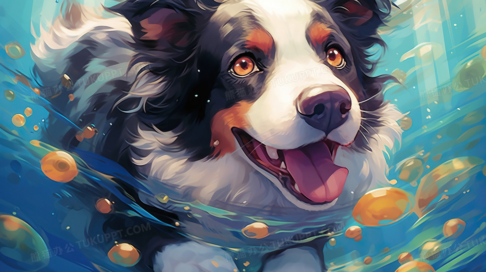 本作品内容为卡通可爱边牧小狗在水里玩耍插画, 格式为 jpg, 大小6 MB, 图片尺寸为2912 x 1632, 源文件无水印, 欢迎使用熊猫办公。 如认为平台内容涉嫌侵权,可通过邮件:tousu@tukuppt.com提出书面通知,我们将及时处理。