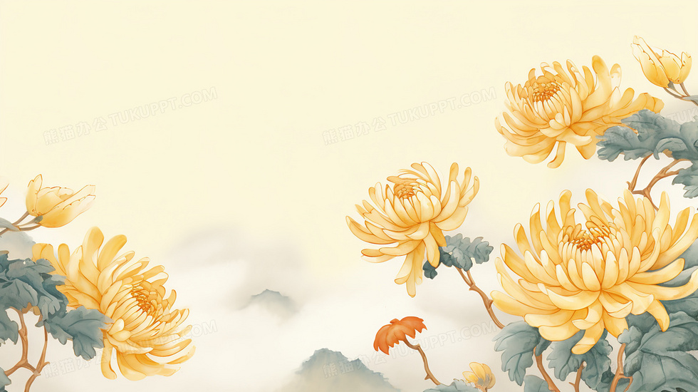 本作品内容为传统节日重阳节菊花插画, 格式为 jpg, 大小5 MB, 图片尺寸为2912 x 1632, 源文件无水印, 欢迎使用熊猫办公。 如认为平台内容涉嫌侵权,可通过邮件:tousu@tukuppt.com提出书面通知,我们将及时处理。