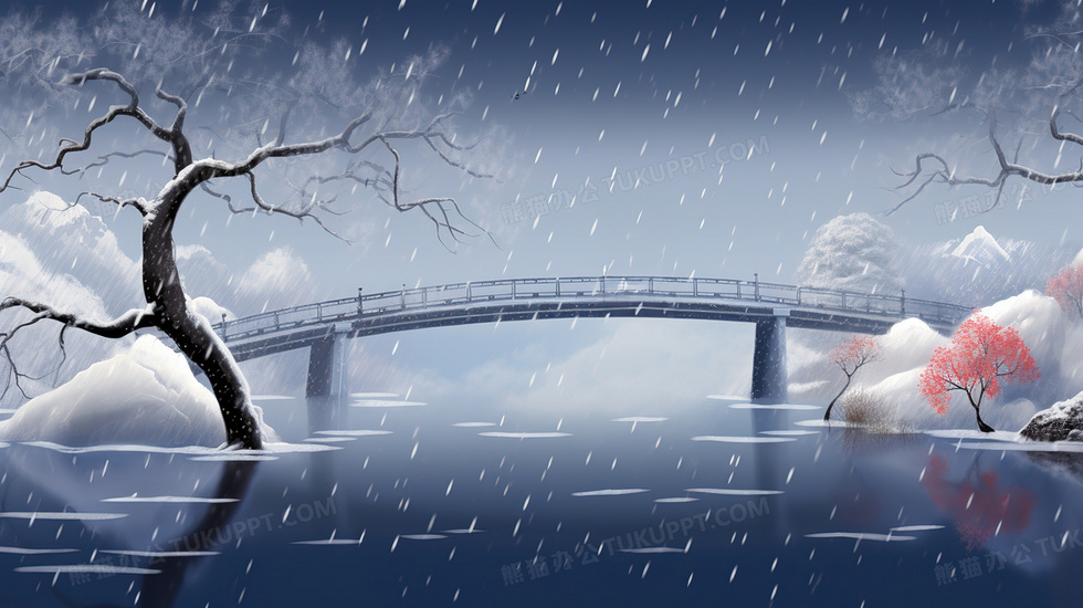 本作品内容为中国风冬天湖面插画, 格式为 jpg, 大小3 MB, 图片尺寸为2912 x 1632, 源文件无水印, 欢迎使用熊猫办公。 如认为平台内容涉嫌侵权,可通过邮件:tousu@tukuppt.com提出书面通知,我们将及时处理。