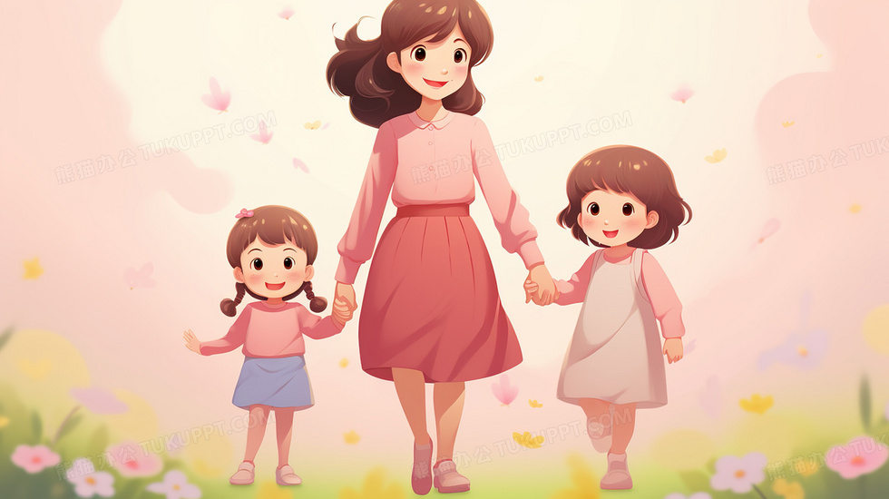 本作品内容为牵着孩子去上学的妈妈温馨插画, 格式为 jpg, 大小4 MB, 图片尺寸为2912 x 1632, 源文件无水印, 欢迎使用熊猫办公。 如认为平台内容涉嫌侵权,可通过邮件:tousu@tukuppt.com提出书面通知,我们将及时处理。