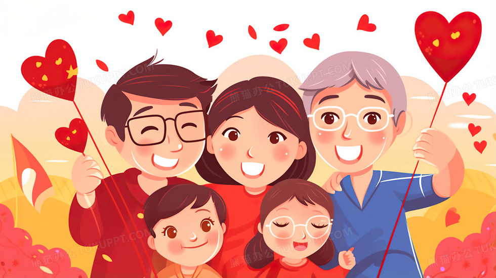 本作品内容为国庆节一家人团聚开心喜悦插画, 格式为 jpg, 大小5 MB, 图片尺寸为2912 x 1632, 源文件无水印, 欢迎使用熊猫办公。 如认为平台内容涉嫌侵权,可通过邮件:tousu@tukuppt.com提出书面通知,我们将及时处理。