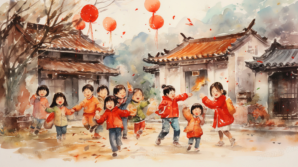 本作品内容为中国古镇乡村小孩庆祝新年插画, 格式为 jpg, 大小7 MB, 图片尺寸为2912 x 1632, 源文件无水印, 欢迎使用熊猫办公。 如认为平台内容涉嫌侵权,可通过邮件:tousu@tukuppt.com提出书面通知,我们将及时处理。