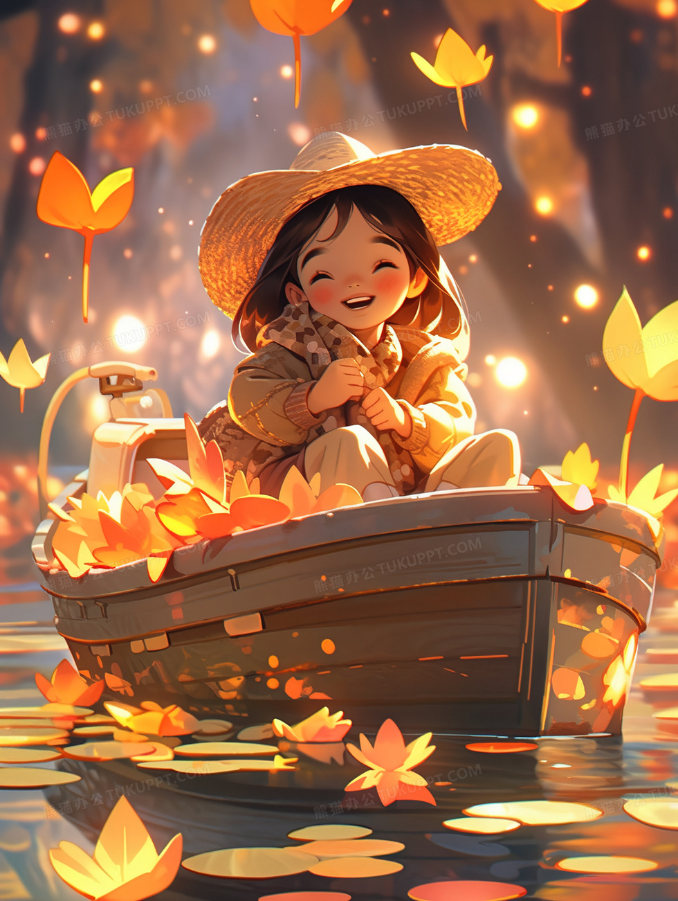 首页 > 插画 > 科技艺术 > 卡通漫画 > 梦幻唯美划小木船的女孩插画