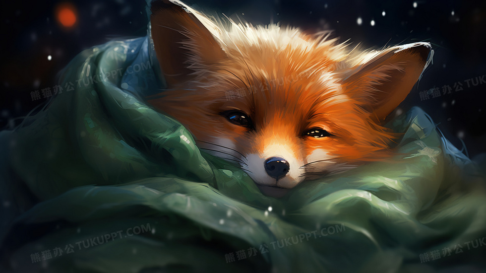 本作品内容为下雪天绿色毛毯包裹着睡觉的小狐狸插画, 格式为 jpg, 大小4 MB, 图片尺寸为2912 x 1632, 源文件无水印, 欢迎使用熊猫办公。 如认为平台内容涉嫌侵权,可通过邮件:tousu@tukuppt.com提出书面通知,我们将及时处理。