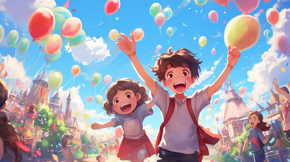 本作品内容为节日里欢呼雀跃庆祝的孩子们插画, 格式为 jpg, 大小6 MB, 图片尺寸为2912 x 1632, 源文件无水印, 欢迎使用熊猫办公。 如认为平台内容涉嫌侵权,可通过邮件:tousu@tukuppt.com提出书面通知,我们将及时处理。