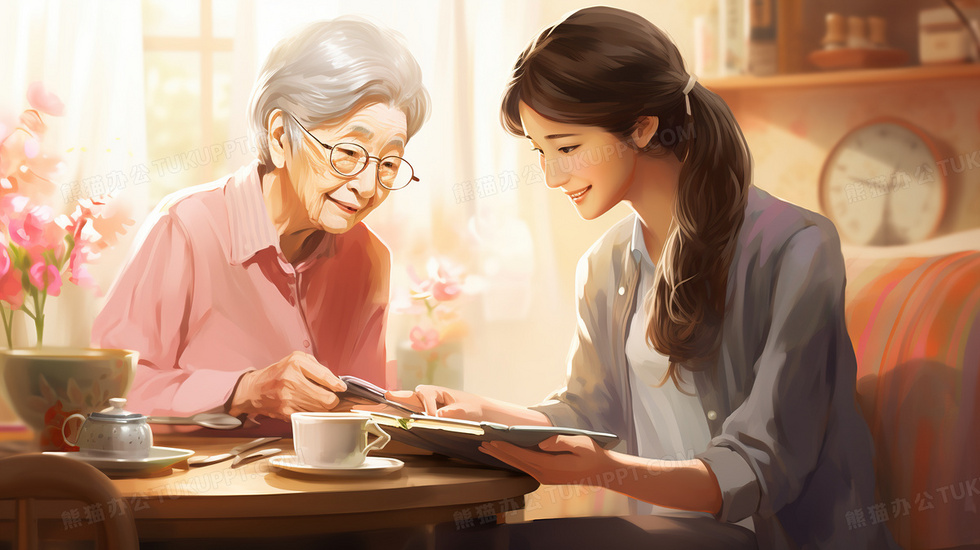 本作品内容为志愿者陪伴老年人公益宣传插画, 格式为 jpg, 大小5 MB, 图片尺寸为2912 x 1632, 源文件无水印, 欢迎使用熊猫办公。 如认为平台内容涉嫌侵权,可通过邮件:tousu@tukuppt.com提出书面通知,我们将及时处理。