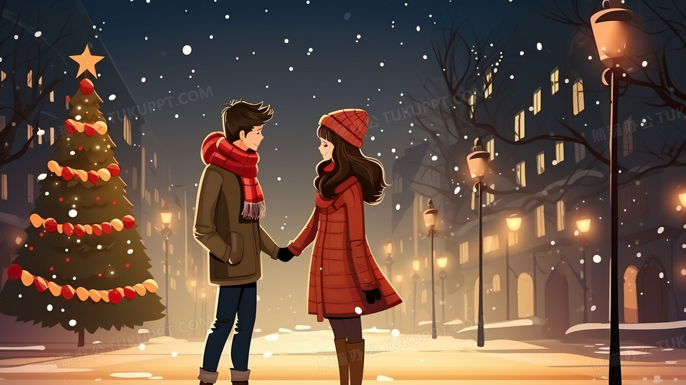 本作品内容为卡通圣诞节圣诞情侣约会插画, 格式为 jpg, 大小5 MB, 图片尺寸为2912 x 1632, 源文件无水印, 欢迎使用熊猫办公。 如认为平台内容涉嫌侵权,可通过邮件:tousu@tukuppt.com提出书面通知,我们将及时处理。
