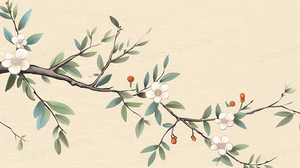 本作品内容为唯美春天植物树枝国画风景文艺春季插画, 格式为 jpg, 大小5 MB, 图片尺寸为2912 x 1632, 源文件无水印, 欢迎使用熊猫办公。 如认为平台内容涉嫌侵权,可通过邮件:tousu@tukuppt.com提出书面通知,我们将及时处理。