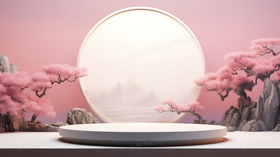 本作品内容为C4D粉梅山水古典电商展示台概念图片, 格式为 jpg, 大小6 MB, 图片尺寸为2912 x 1632, 源文件无水印, 欢迎使用熊猫办公。 如认为平台内容涉嫌侵权,可通过邮件:tousu@tukuppt.com提出书面通知,我们将及时处理。
