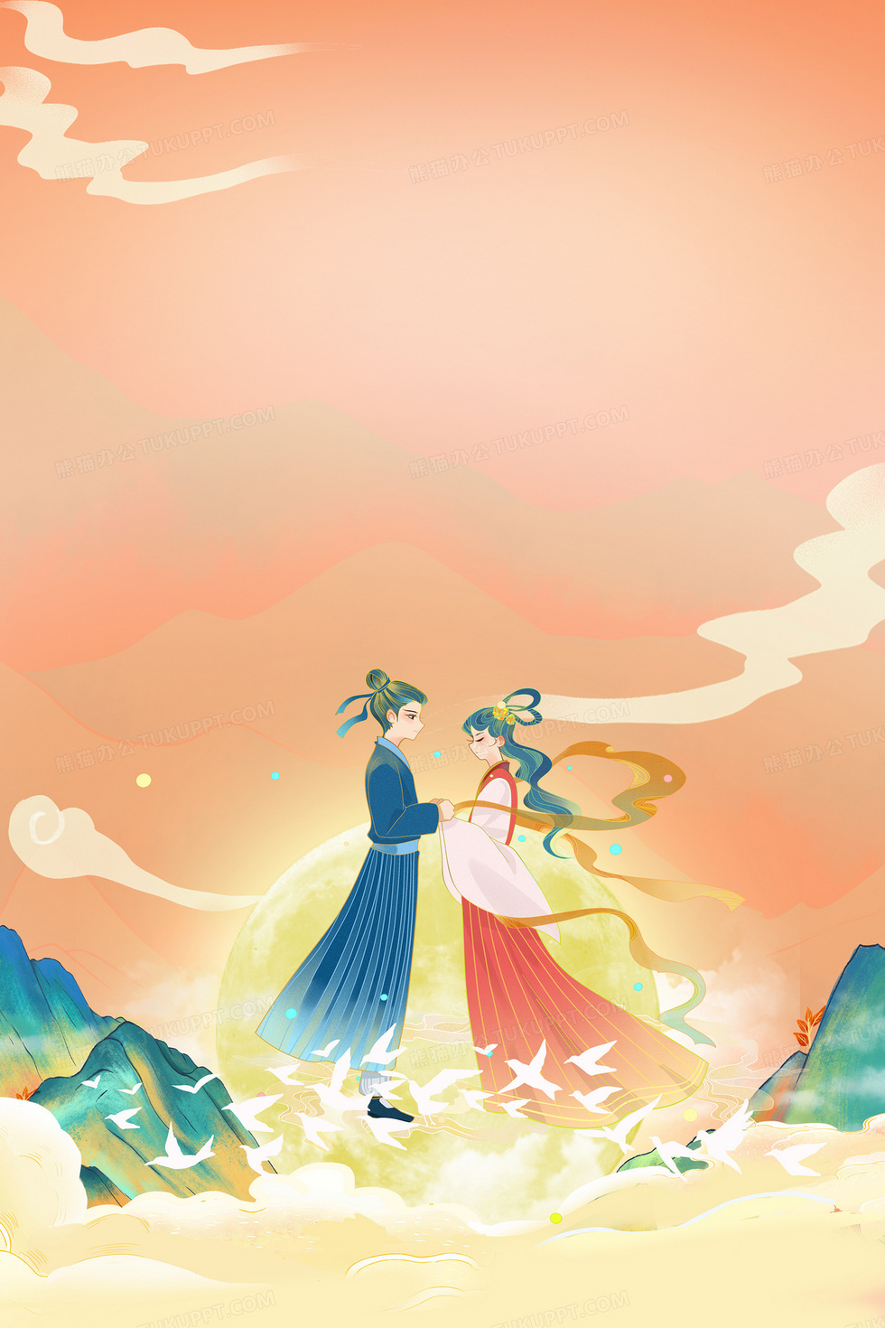 本作品内容为传统中国风国潮七夕背景, 格式为 psd, 大小54 MB, 图片尺寸为3543 x 5315, 作品中背景图片无需修改, 源文件无水印,可以直接使用, 欢迎使用熊猫办公。 如认为平台内容涉嫌侵权,可通过邮件:tousu@tukuppt.com提出书面通知,我们将及时处理。