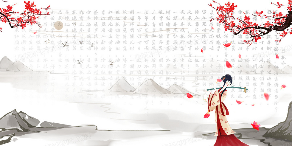 本作品内容为水墨中国风红楼梦章节黛玉葬花背景, 格式为 psd, 大小28 MB, 图片尺寸为4724 x 2362, 作品中背景图片无需修改, 源文件无水印,可以直接使用, 欢迎使用熊猫办公。 如认为平台内容涉嫌侵权,可通过邮件:tousu@tukuppt.com提出书面通知,我们将及时处理。